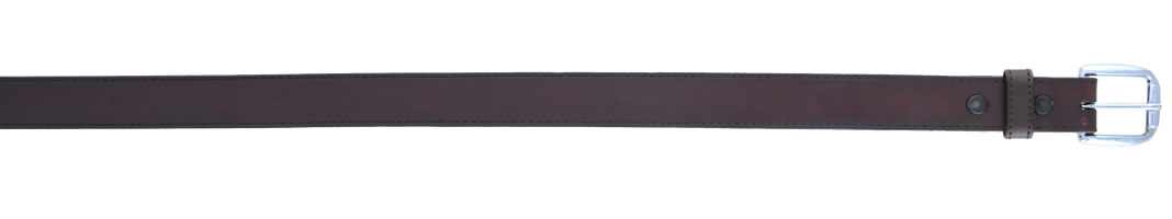 metal buckle. Cinto fino de piel de res original hecho a mano de color cafe, aceitado, suavizado, liso, cosido decorativo con hilo de nylon y hebilla de metal.