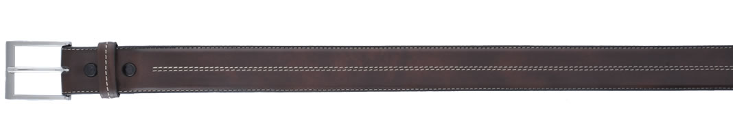 metal buckle. Cinto fino de piel de res original hecho a mano de color cafe, aceitado, suavizado, liso, cosido decorativo con hilo de nylon y hebilla de metal.