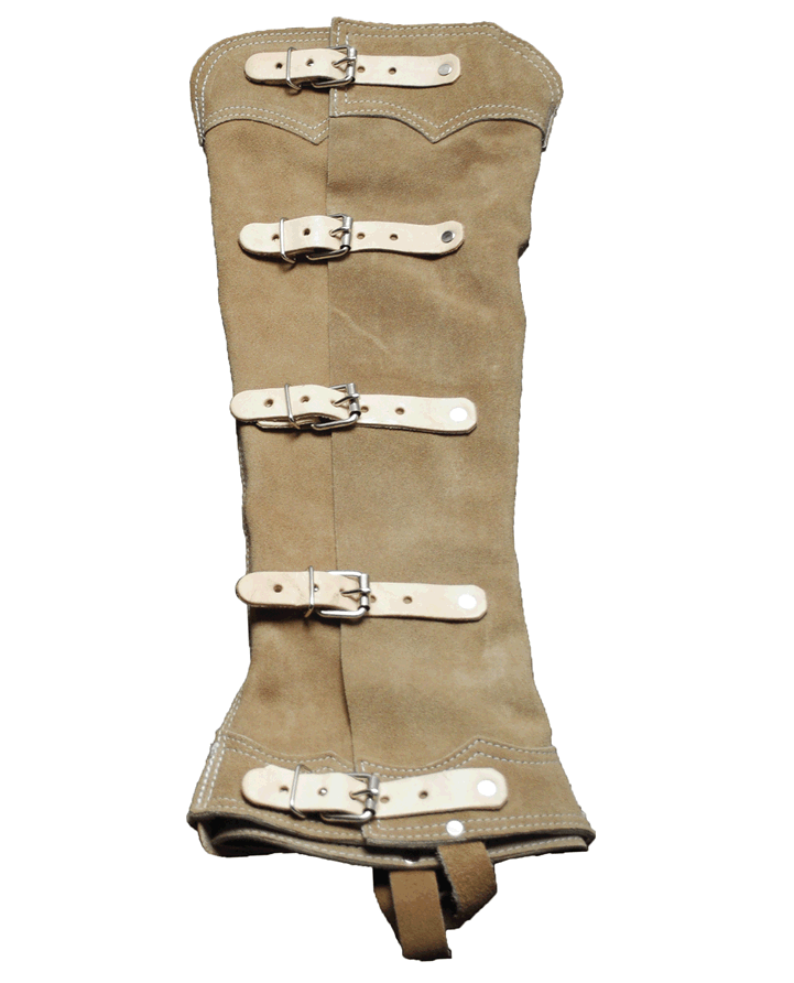 chaps with five buckles. Polaina de Cuero de Gamuza de cinco hebillas.