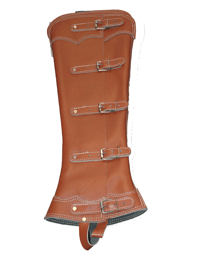 Leather chaps with 6 buckles. Polaina de Cuero de 6 hebillas.